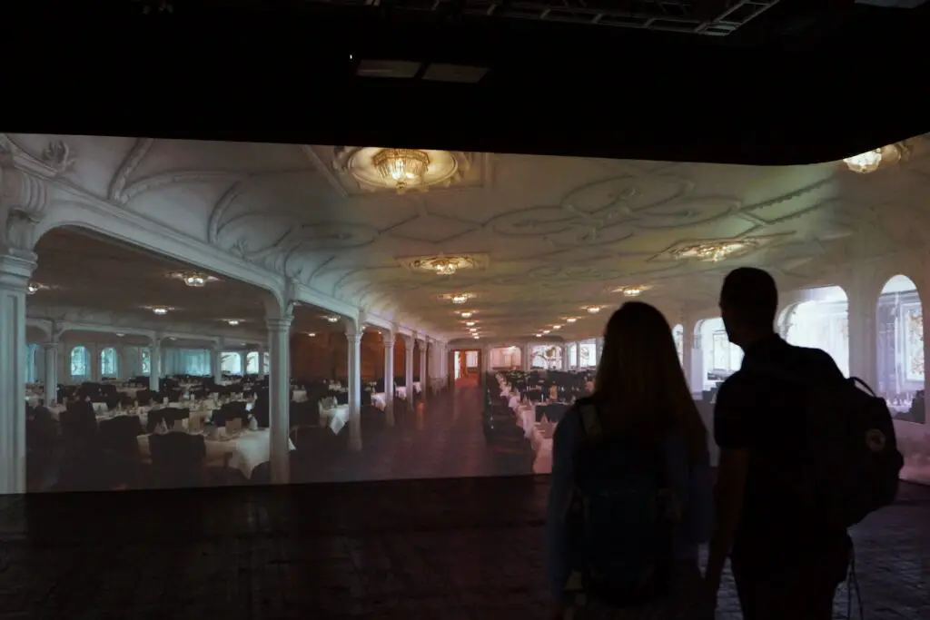 À la fin de l’exposition, une zone immersive avec écran géant, pour une visite live du Titanic